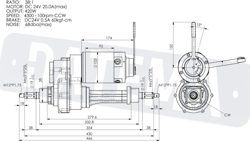 Ontdek onze krachtige en robuuste 420 Watt elektromotor, speciaal ontworpen om te voldoen aan zelfs de meest veeleisende vermogensbehoeften. Met een indrukwekkende verhouding van 38:1 levert deze motor een uitzonderlijk koppel bij 4300 RPM, waardoor hij moeiteloos uitdagende taken aankan en betrouwbare prestaties levert in diverse toepassingen.