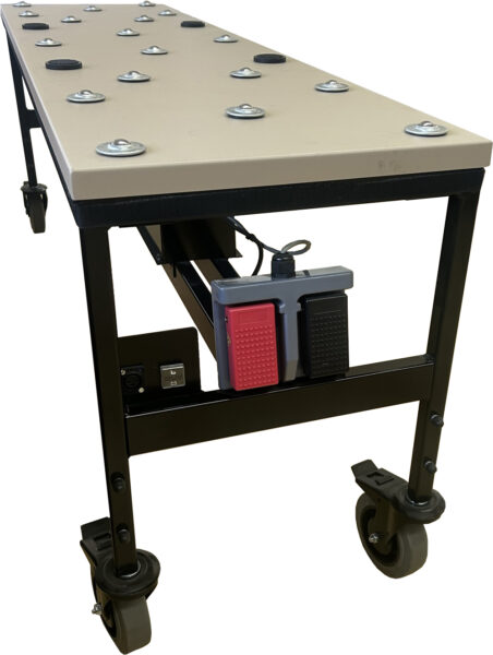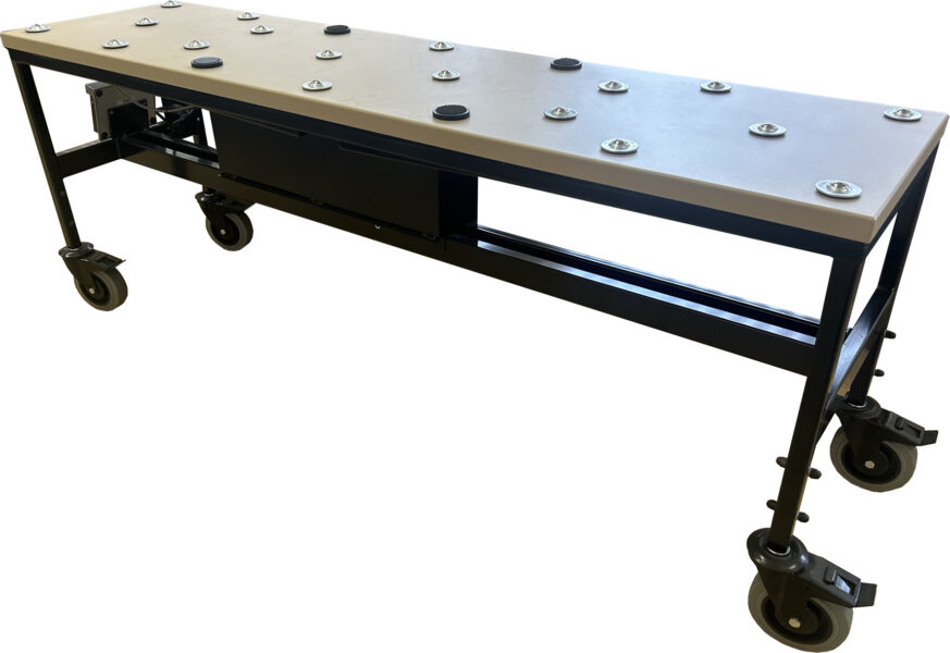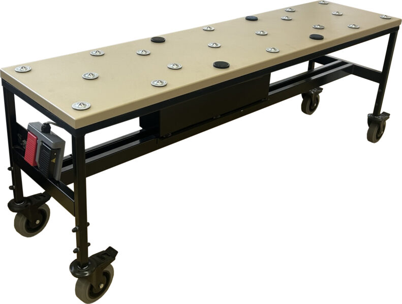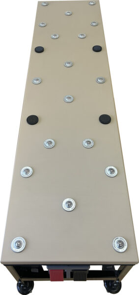 Deze baar is voorzien van kogellagers waardoor de kist zij-waards te verschuiven is. In combinatie met bijvoorbeeld onze hefwagen Type KP is dit ideaal! Door de 4 punten kisten rem is de rem zonder inspanning elektrisch te vergrendelen!