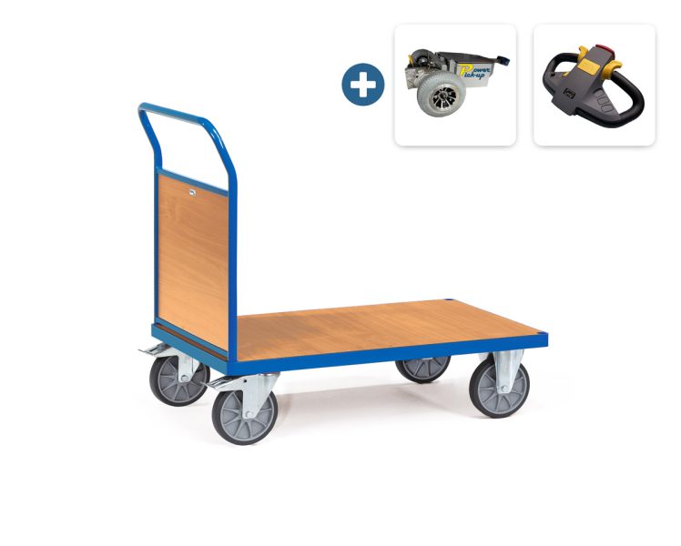 Stalen buis en gelast profielstaal, gepoedercoat RAL 5007, platform houten plaat, toplaag beukendecor. Kopwand van houten plaat, toplaag beukendecor, wand 500 mm hoog.