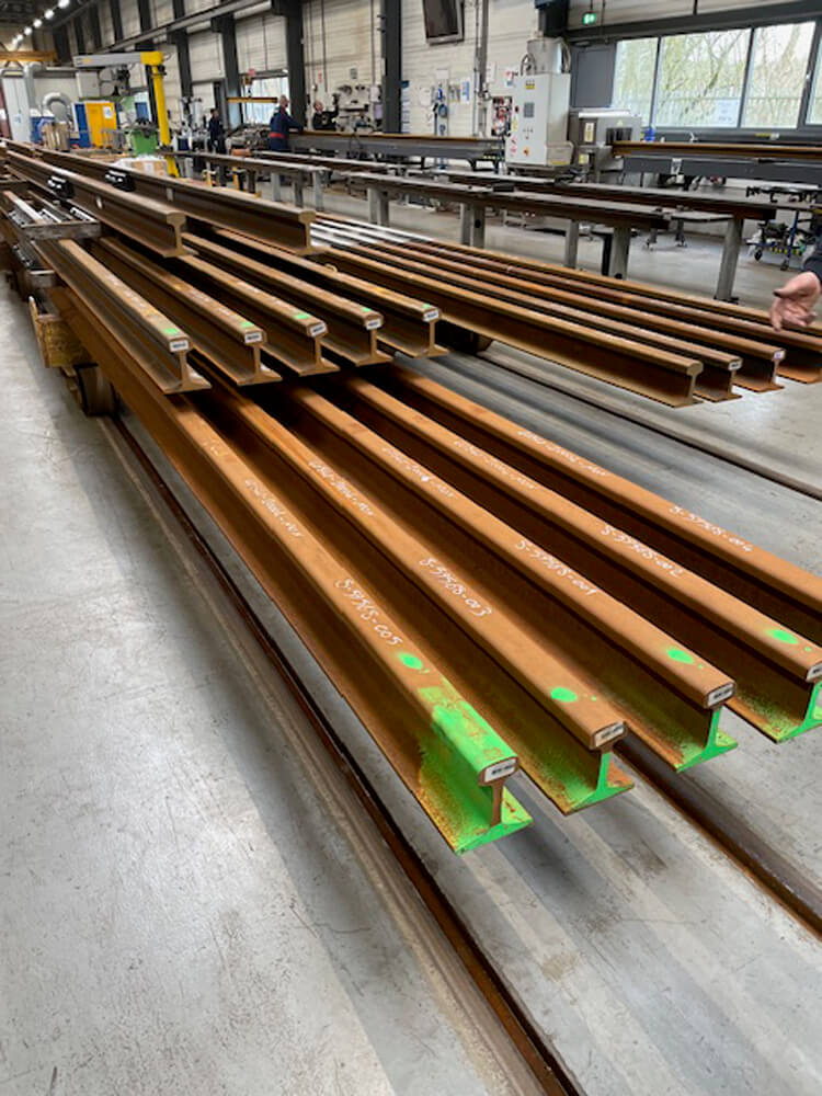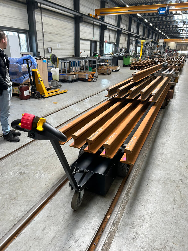 In de loods/ werkplaats van dit bedrijf hebben ze een spoor baan in de vloer liggen waar hun zwaar last dragende trolley’s door heen rollen. Op deze trolley’s liggen de lange delen van het trein spoor. Het gemiddelde gewicht hiervan is ca. 5500kg dat van de ene kant naar de andere kant van de loods moet worden geduwd voor verschillende werkzaamheden.